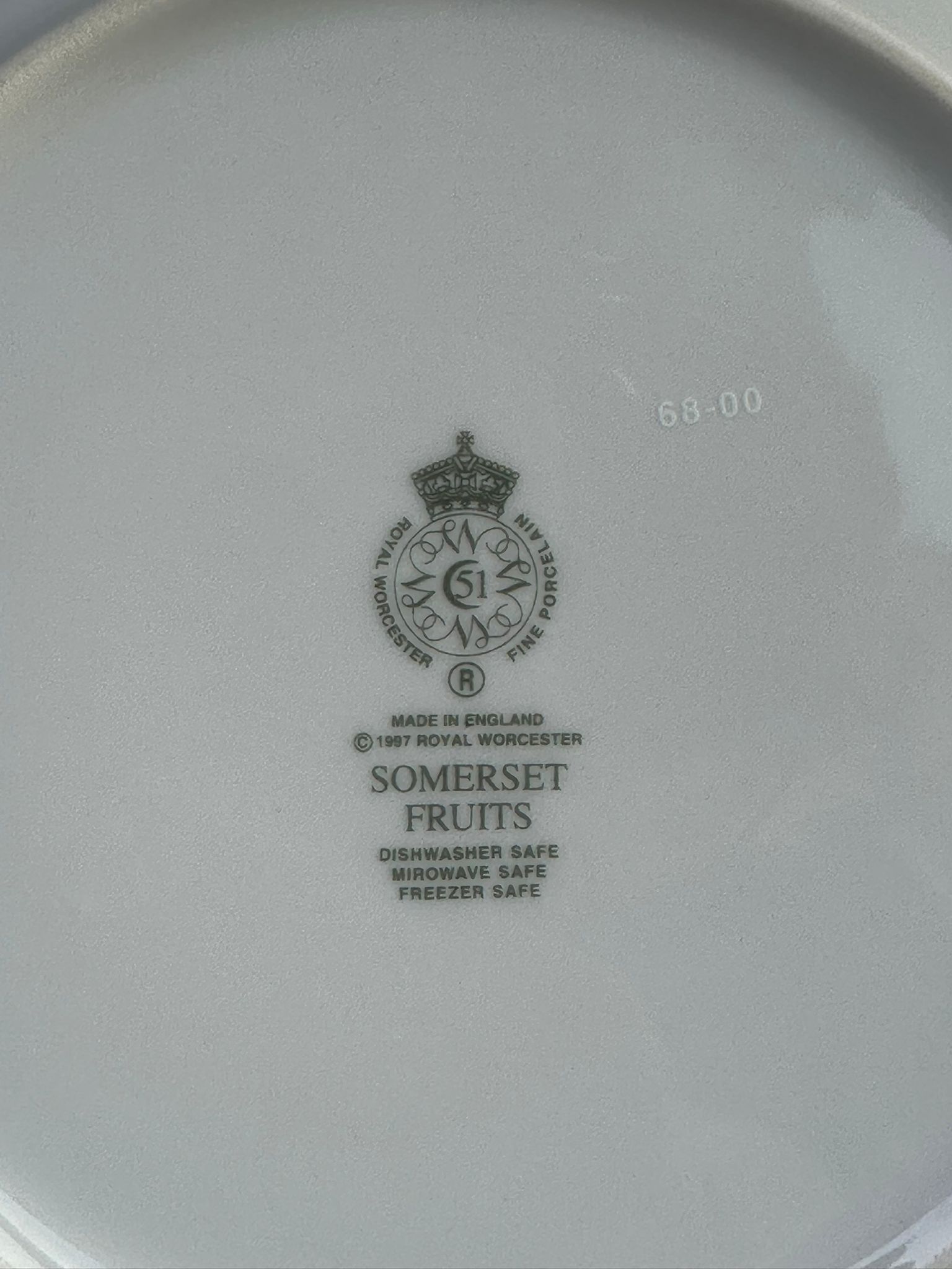 Enhance your dining collection with this beautiful pair of authentic Royal Worcester plates from the classic “Somerset Fruits” collection.