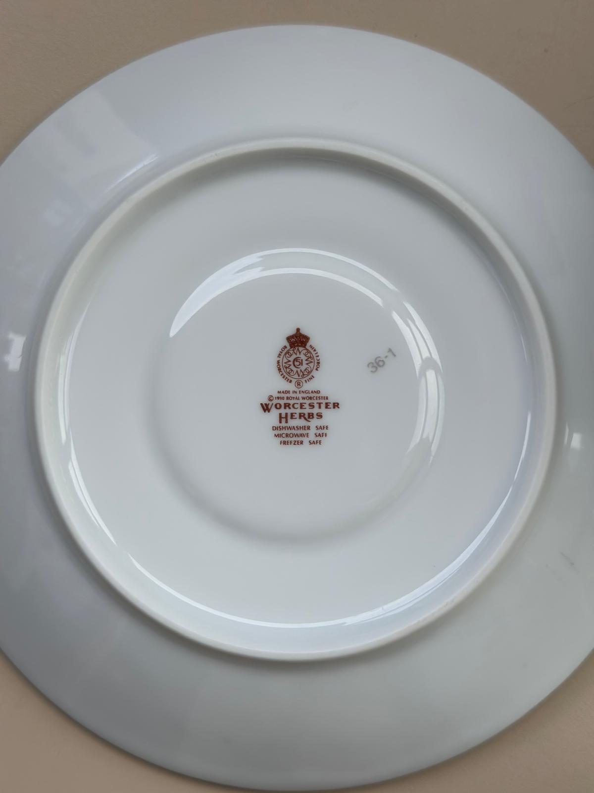 The Royal Worcester “Worcester Herbs” pattern is a highly recognizable and extensive line of porcelain products produced from approximately 1990 to 2009. It is known for its detailed, botanical design that evokes the feel of a traditional English cottage garden.