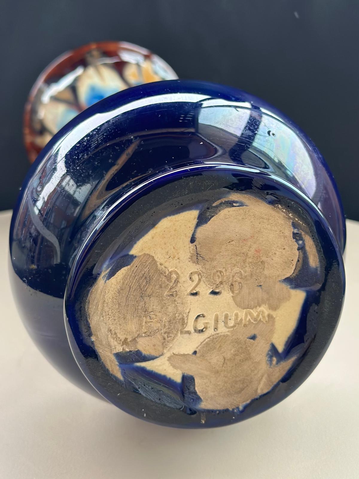 Beautiful Vintage Belgian Art Pottery Vase – Stunning Cobalt Blue & Amber Drip Glaze