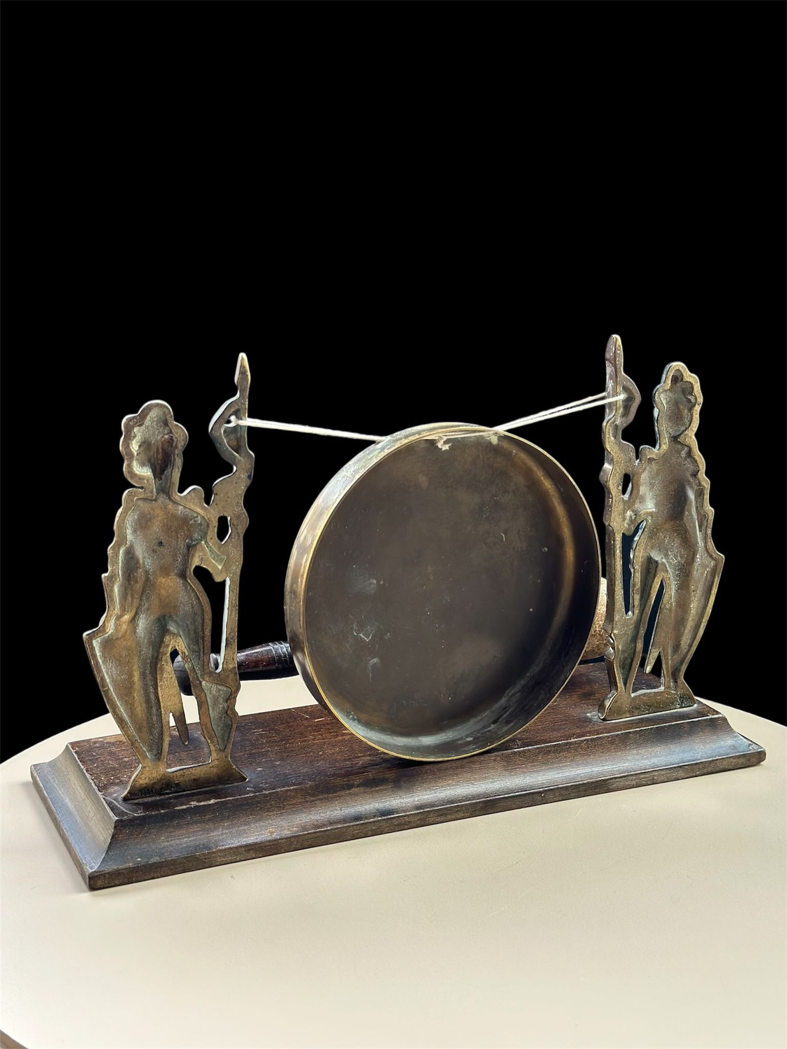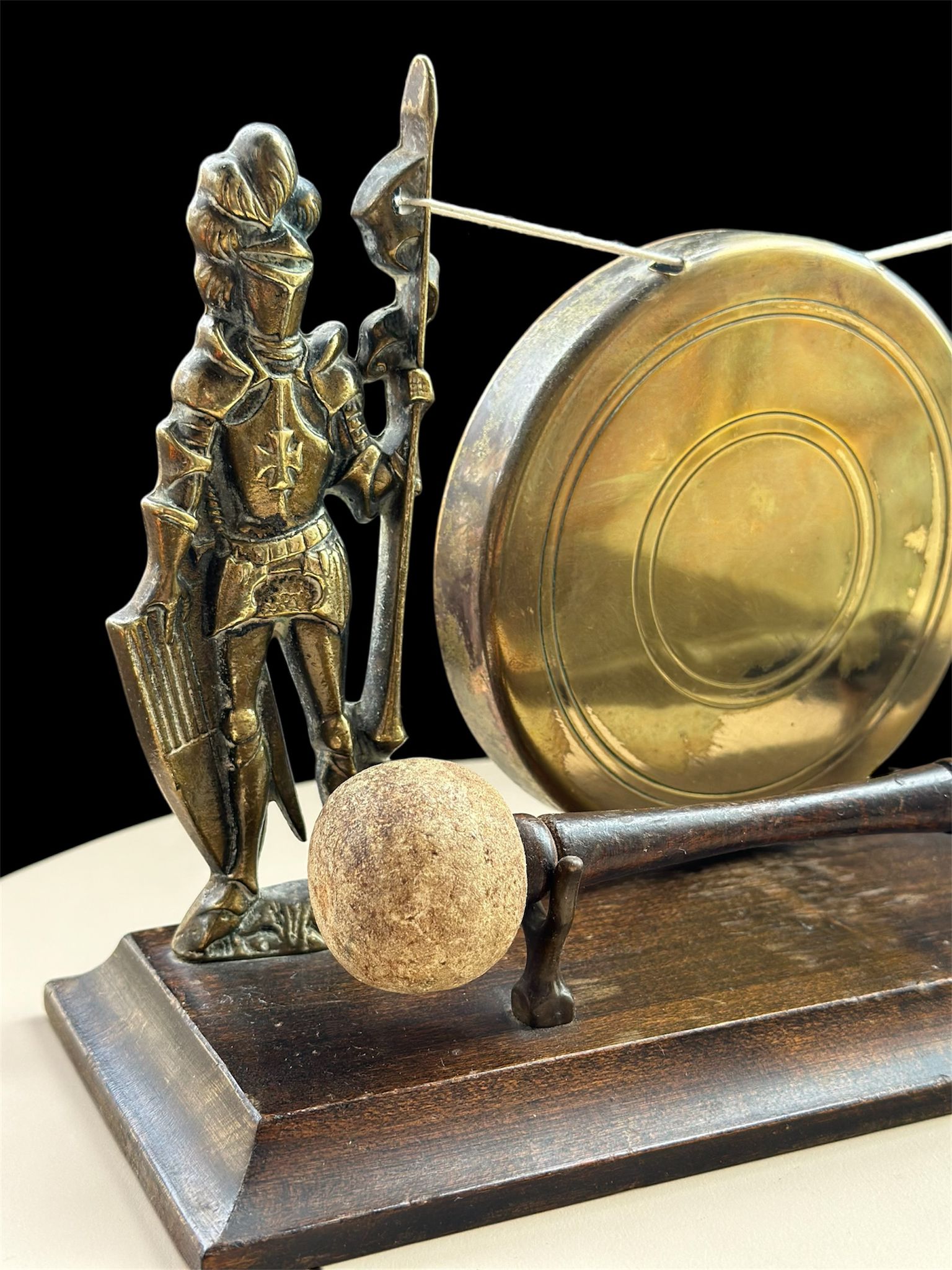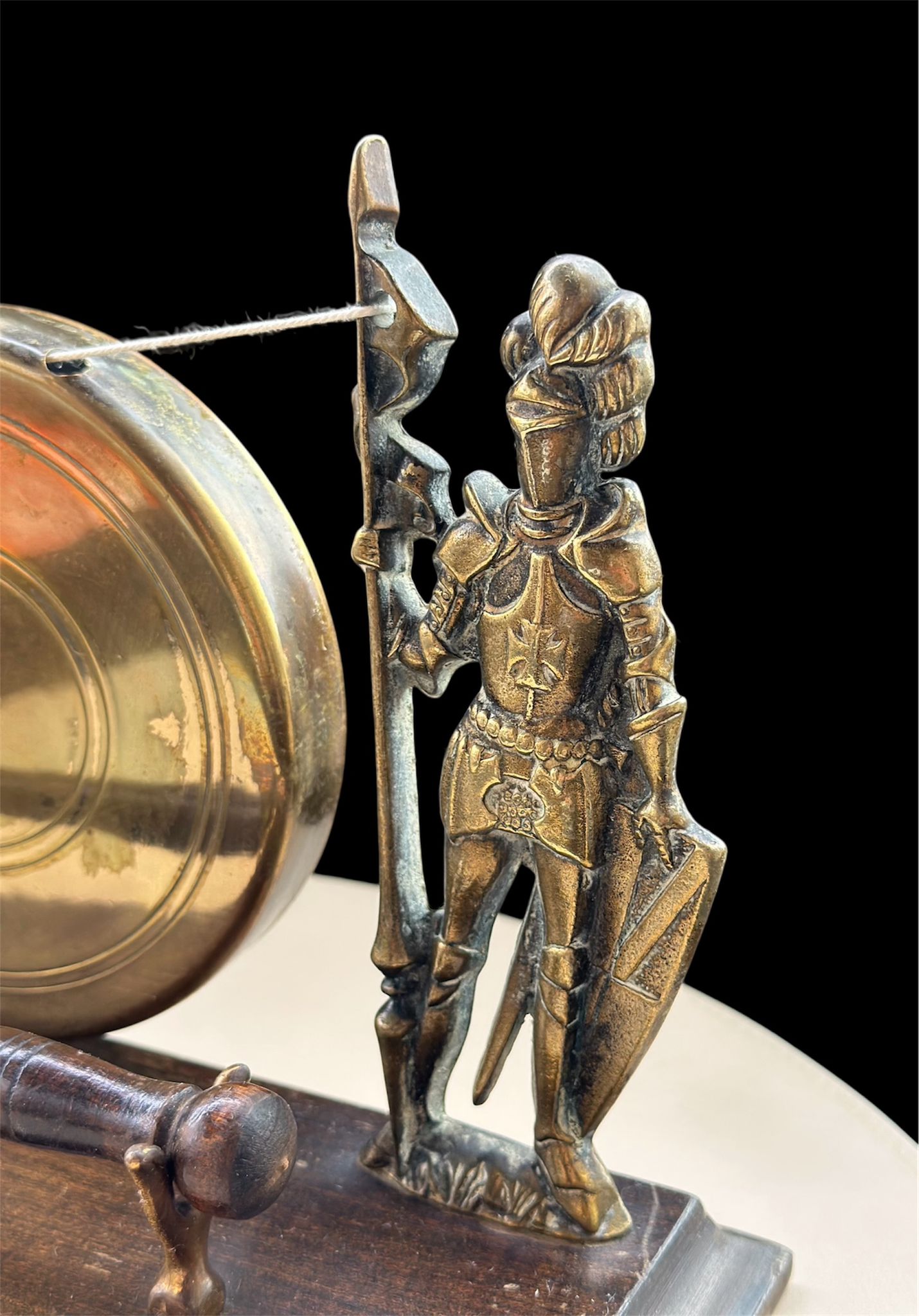 Vintage Brass Knight Warriors Table Gong Bell – Rare Medieval-Style Decor
