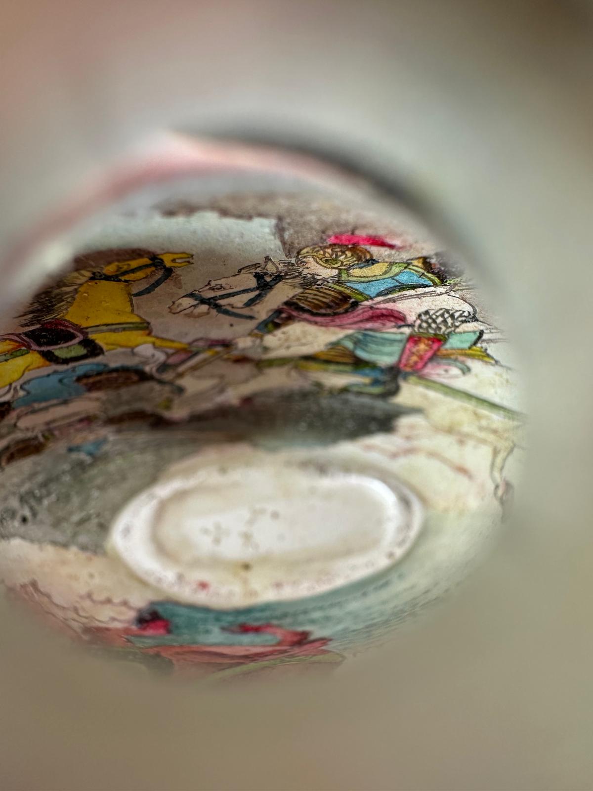 Vintage Chinese Inside-Painted Glass Snuff Bottle Warrior & Horse Battle Scene