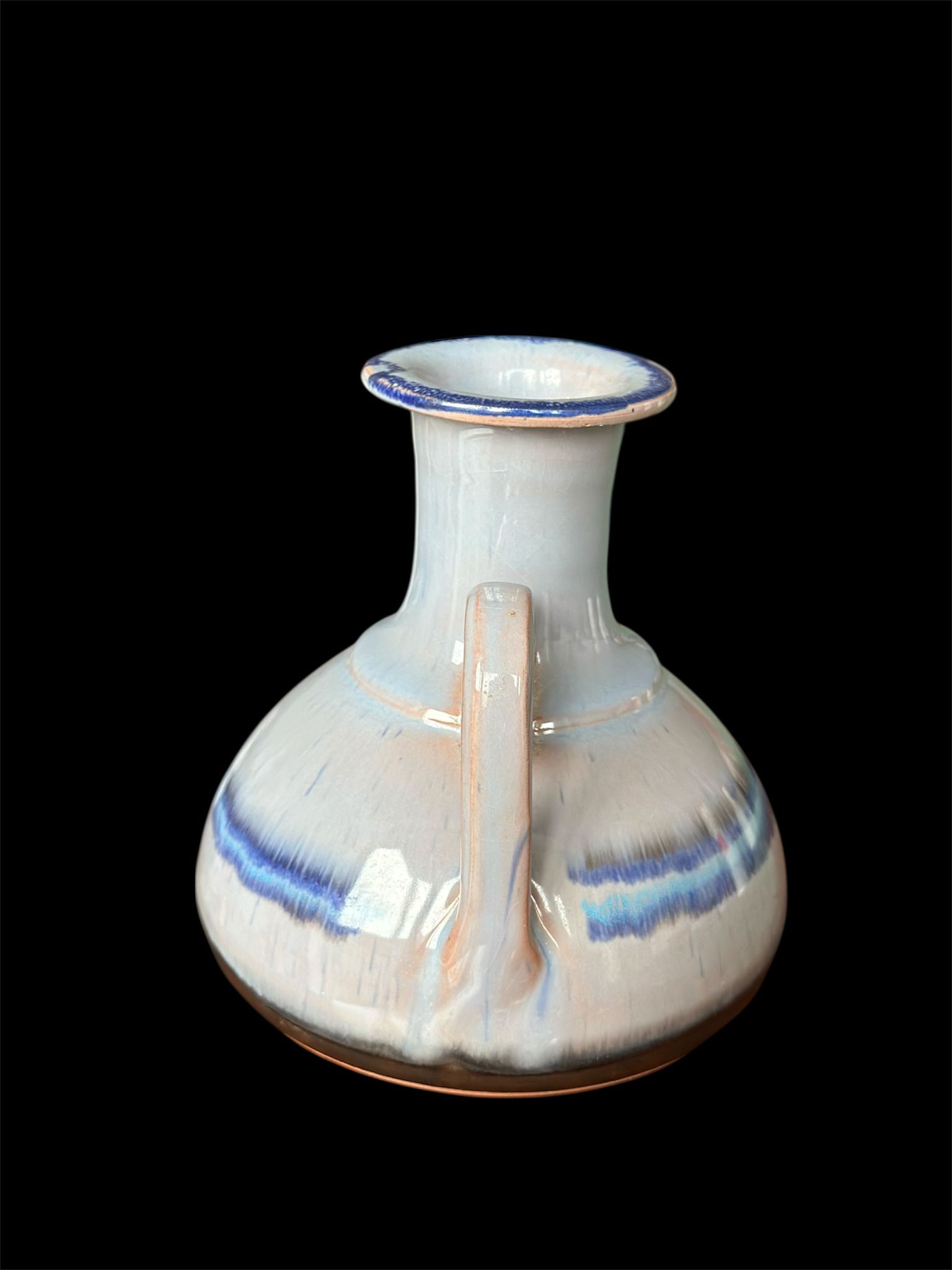 Vintage Mid-Century Modern Studio Pottery Vase – Blue & White Drip Glaze – 12cm